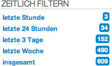 Die Suche ist ab jetzt zeitlich filterbar und liefert a priori Feedback über die Anzahl Treffer pro Zeitfenster.